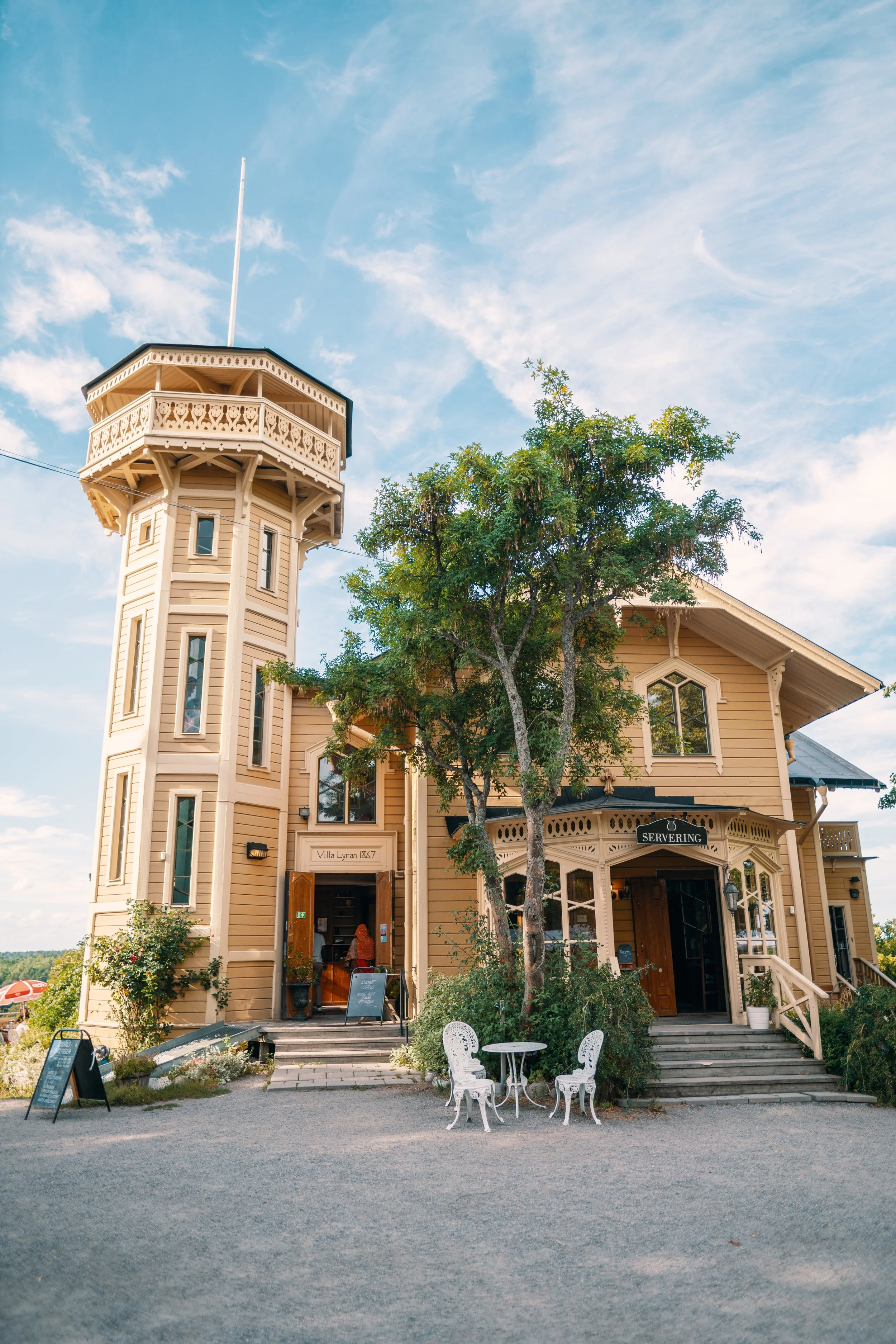 Villa Lyran byggdes 1867 och ligger på en av Mälarens mest natursköna platser, med utsikt över vattnet och in mot Stockholm. Huset är ritat i en romantisk, nästan sagolik stil som gör att det sticker ut än i dag. Med sina snickarglädje-detaljer, torn och verandor blev Villa Lyran ett av sin tids mest omtalade sommarhus.